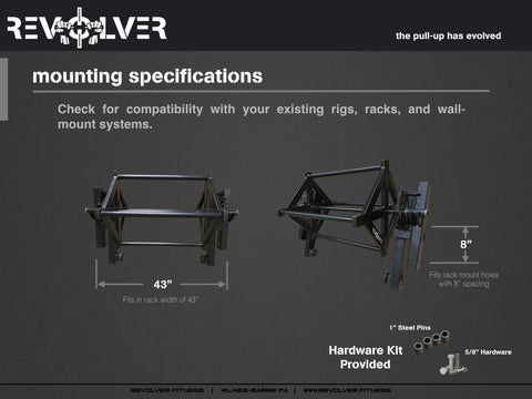 The Revolver connects to your rack or rig system with 4 bolts. Assembly could not be easier.